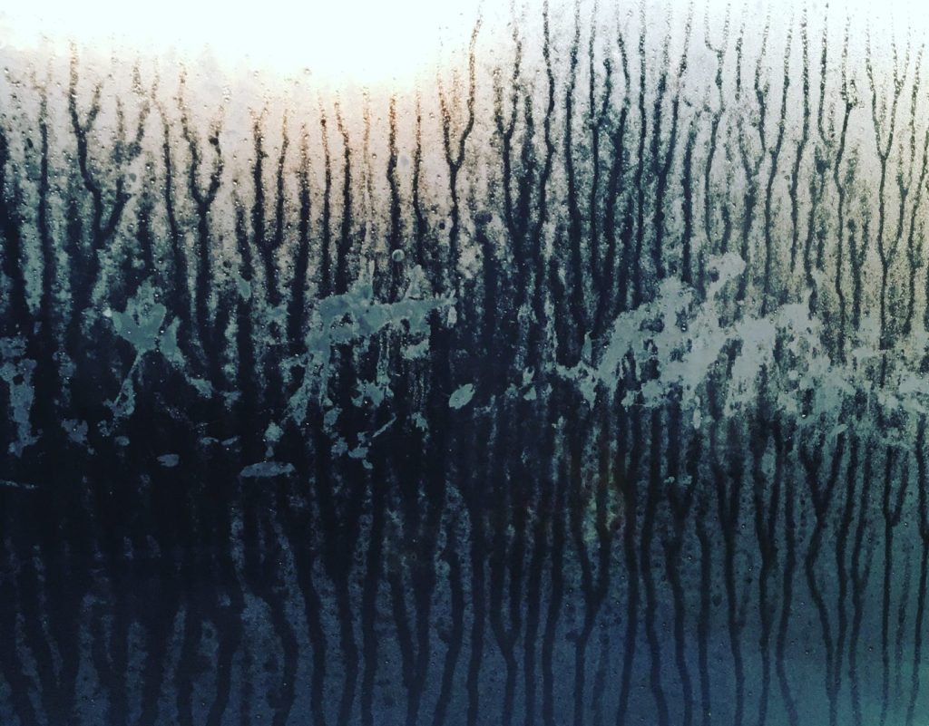She watched the world through an altered reality, the rivulets of water distorting the world outside the coffee shop window, the busy Saturday revellers warped and fractured in the rivers of colour and chaos on the steamy glass.